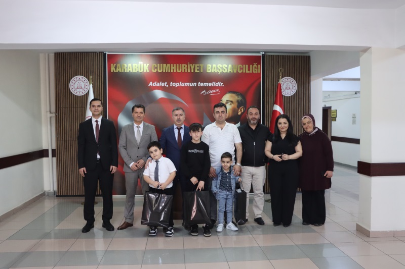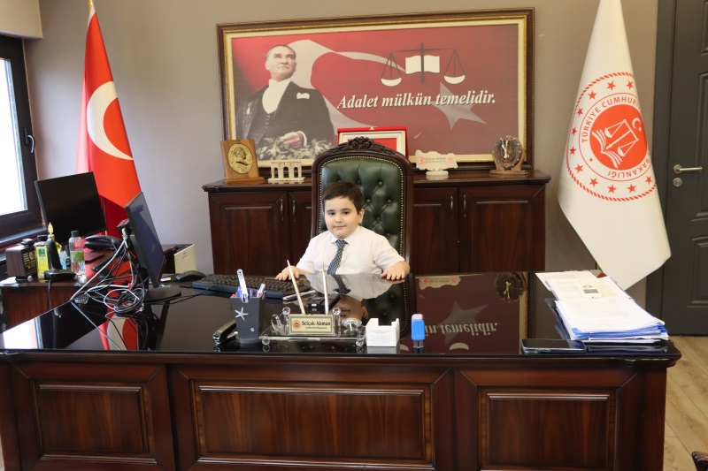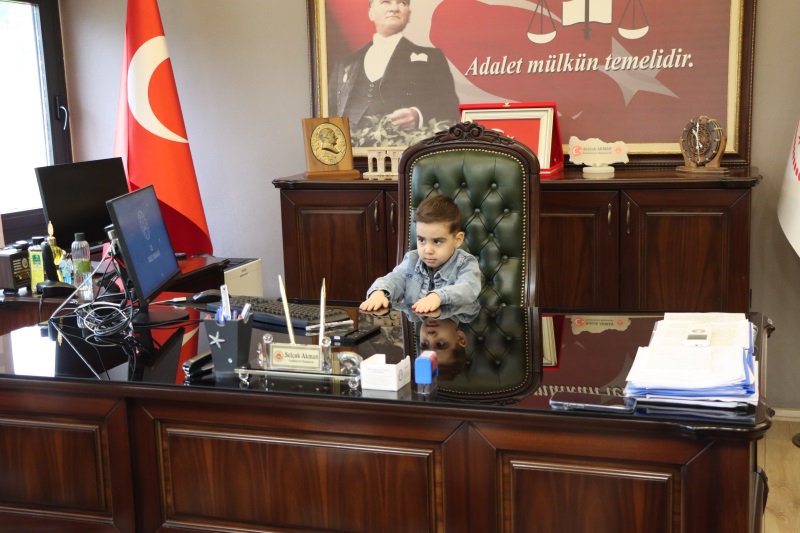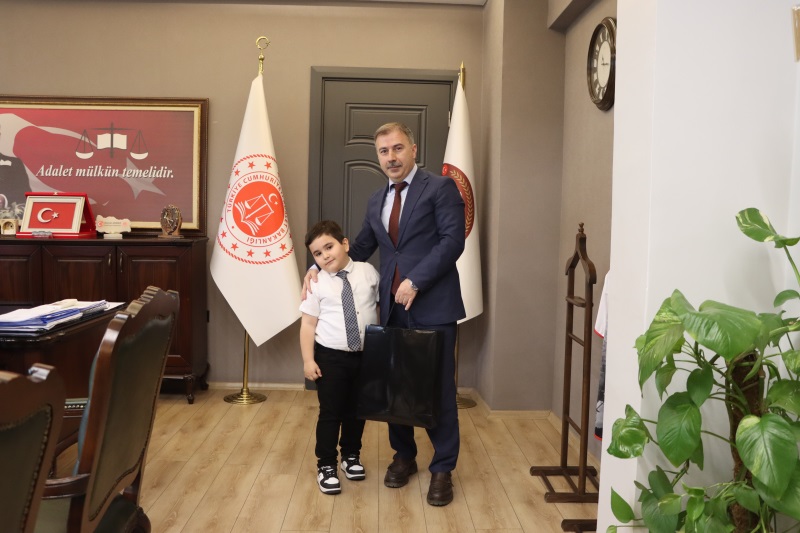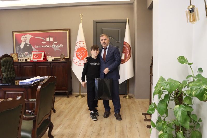 23 Nisan Ulusal Egemenlik ve Çocuk Bayramı dolayısıyla Cumhuriyet Başsavcımız Sayın Selçuk AKMAN, adliyemiz İcra katibi Safiye Çankaya’nın oğlu Uygar Çankaya, adliyemiz hizmetlisi Sinan Kırık’ın oğlu Ali Fettah Kırık ile adliyemiz personellerinden merhum hizmetli Aydın Takıcak’ın oğlu Tümer Takıcak’ı makamında kabul etti.
