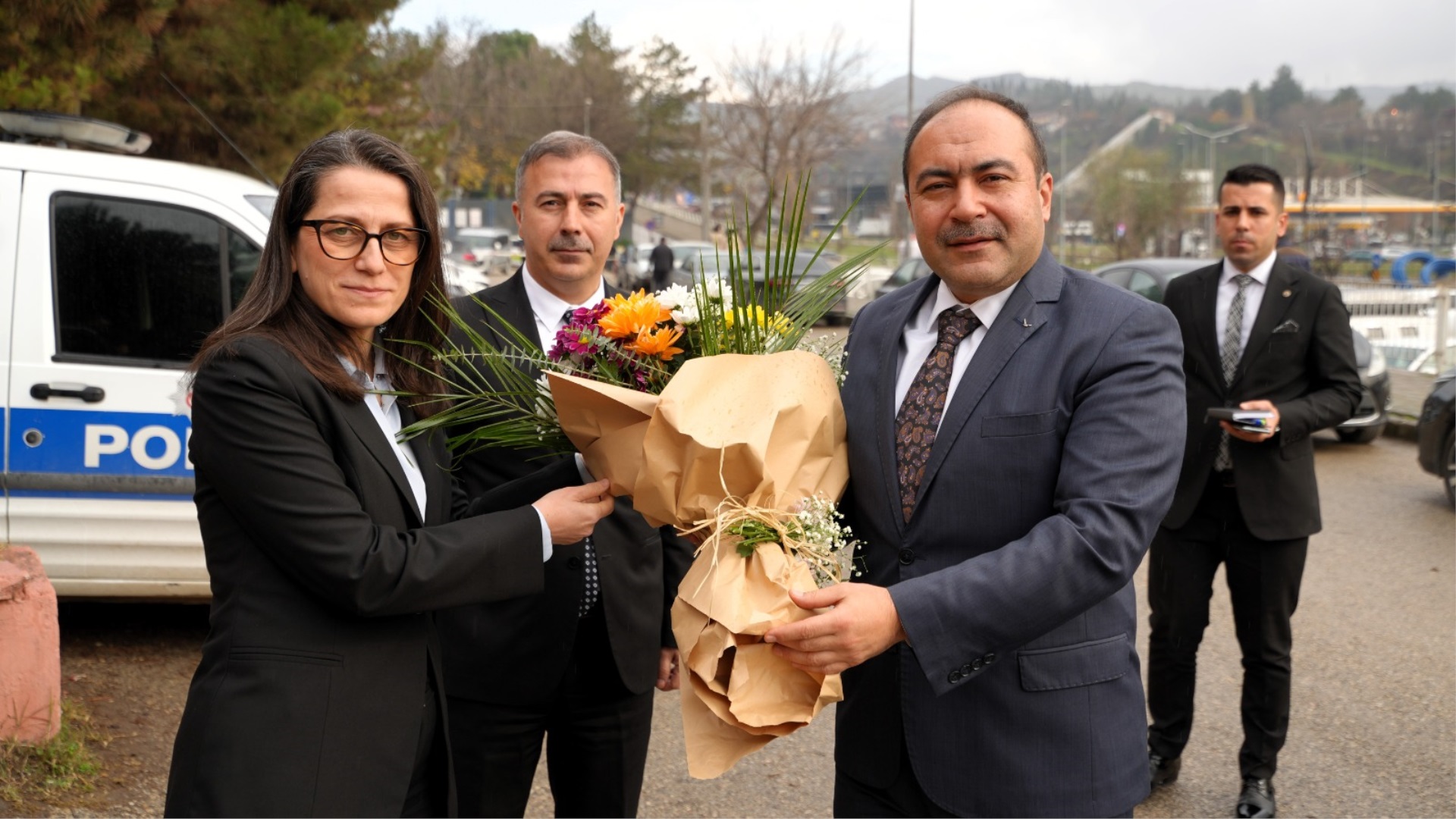 HSK Üyesi Sayın Serdar ATEŞ’i adliyeye gelişinde Karabük Cumhuriyet Başsavcısı Sayın Selçuk AKMAN, Adalet Komisyonu Başkanı Sayın Aynur ÇELİK ile hakim ve savcılar karşıladı. Adalet Komisyonu Başkanı Sayın ÇELİK, nazik ziyaretleri dolayısıyla Sayın ATEŞ’e çiçek takdim ederek teşekkürlerini iletti. Karşılamadan duyduğu memnuniyeti dile getiren ATEŞ, yargı mensuplarına çalışmalarındaki özveri için teşekkür etti.
